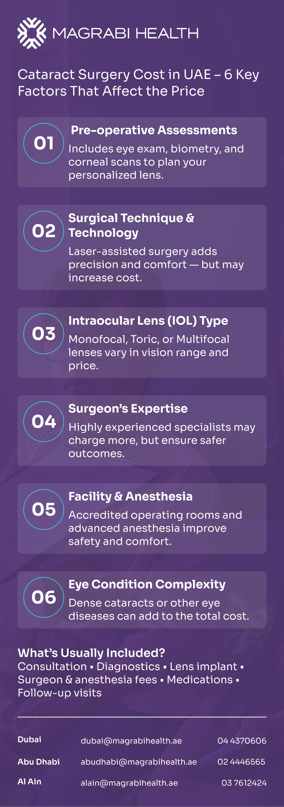 When people ask about cataract surgery cost in uae, these are the drivers that typically shape the final amount: