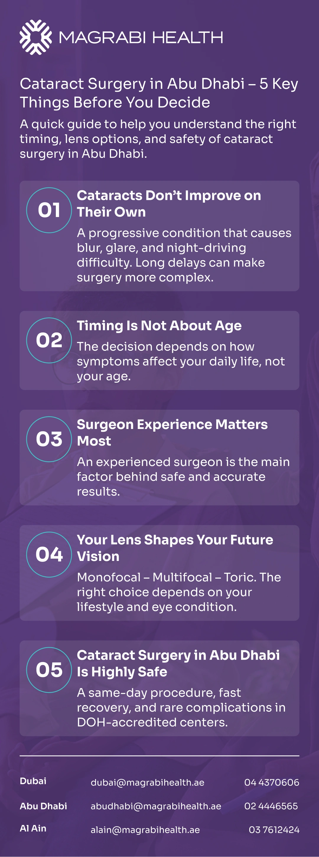 Start with a professional cataract evaluation — book your assessment at Magrabi Abu Dhabi today.